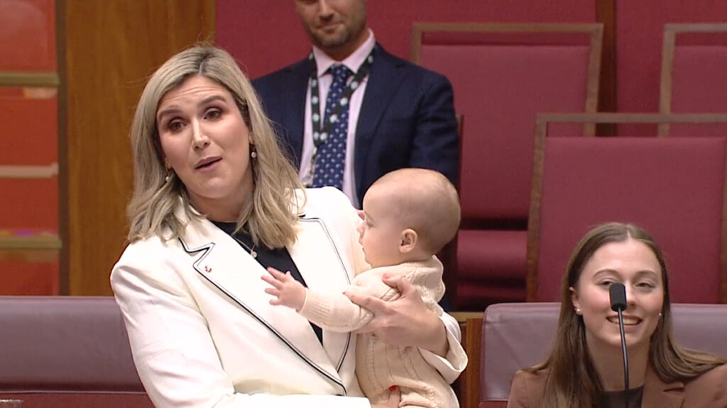 অস্ট্রেলিয়ায় সন্তান কোলে নিয়েই পার্লামেন্টে ভাষণ দিলেন কুইন্সল্যান্ডের নবনির্বাচিত লেবার সিনেটর, কোরিন মুলহোল্যান্ড। আট মাস বয়সী শিশুপুত্র অগিকে নিয়ে দেয়া তার অভিষেক ভাষণ আলোড়ন তুলেছে নেট দুনিয়ায়। একইসাথে ব্যক্তিজীবন ও কর্মক্ষেত্র সামলানো নারীদের অনুপ্রেরণা আর সাধুবাদ জানাতেই এ কাজ করেন কোরিন। এর আগে সন্তান কোলে নিয়ে নির্বাচনী প্রচারণাও চালান এই সিনেটর।