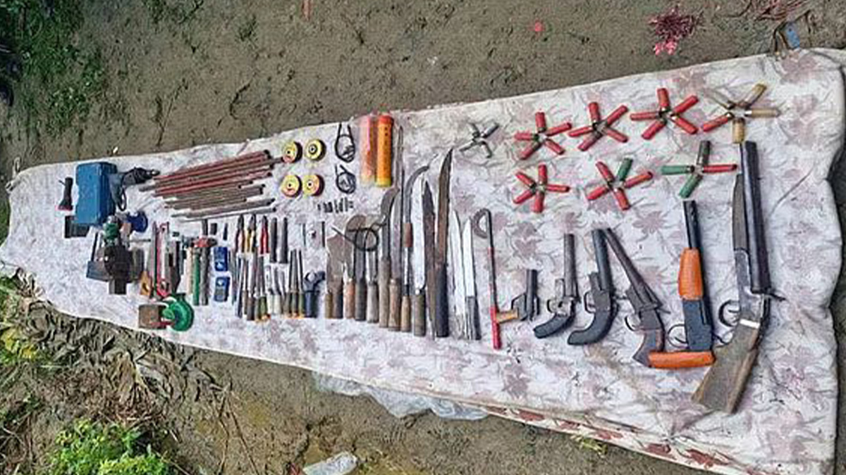 আজ শনিবার (৩০ আগস্ট) সকালে এই অভিযান পরিচালনা করা হয়। এ সময় ৬টি দেশীয় অস্ত্র, ৩৫ রাউন্ড খালি কার্তুজ, ৫ রাউন্ড তাজা কার্তুজ, একটি চাইনিজ কুড়াল, ২০টি ছুরি, চার্জারসহ ২টি ওয়াকিটকি, ১টি মেগাফোন, ৪টি প্যারাসুট ফ্লেয়ার এবং অস্ত্র তৈরির বিভিন্ন সরঞ্জাম ও যন্ত্রপাতি উদ্ধার করা হয়।