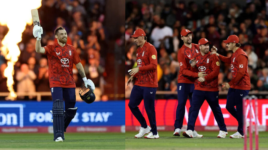 আগে ব্যাট করা ইংলিশ ইনিংসের নায়ক ফিল সল্ট। মাত্র ৩৯ বলে শতক পূর্ণ করে ইংল্যান্ডের দ্রুততম সেঞ্চুরিয়ান এখন তিনি। শেষ পর্যন্ত অপরাজিত থাকা সল্ট খেলেন ১৪১ রানের ঝড়ো ইনিংস, যা ইংল্যান্ডের টি টোয়েন্টি ইতিহাসে সর্বোচ্চ ব্যক্তিগত ইনিংস। তার সঙ্গে বিধ্বংসী ব্যাটিং করেন অধিনায়ক জস বাটলার। তার ব্যাট থেকে আসে ৮৩ রান।