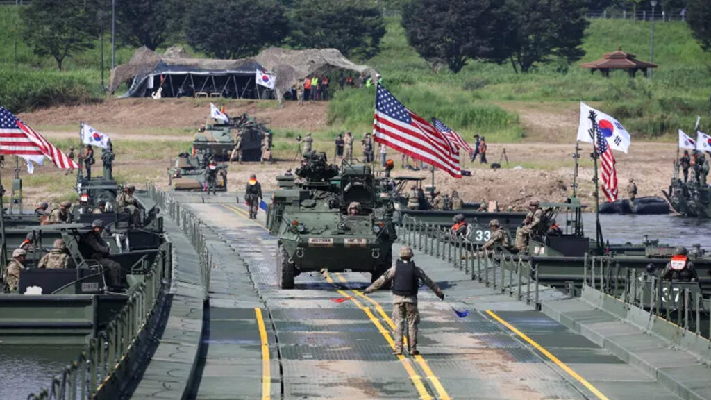 সোমবার থেকে শুরু তিন দেশের বার্ষিক প্রতিরক্ষামূলক মহড়া ‘ফ্রিডম এজ’। পিয়ংইয়ং এর দাবি, উত্তর কোরিয়ার পারমাণবিক কর্মসূচি ও ক্ষেপণাস্ত্রের বিরুদ্ধে আকাশ, নৌ ও সাইবার অপারেশনাল সক্ষমতা বৃদ্ধিই দেশগুলোর উদ্দেশ্য। এটি স্পষ্ট উস্কানি বলেও অভিযোগ করে। তবে সিউল এবং ওয়াশিংটন বলেছে, কেবল প্রতিরক্ষার জন্যই আয়োজিত হচ্ছে এই মহড়া।