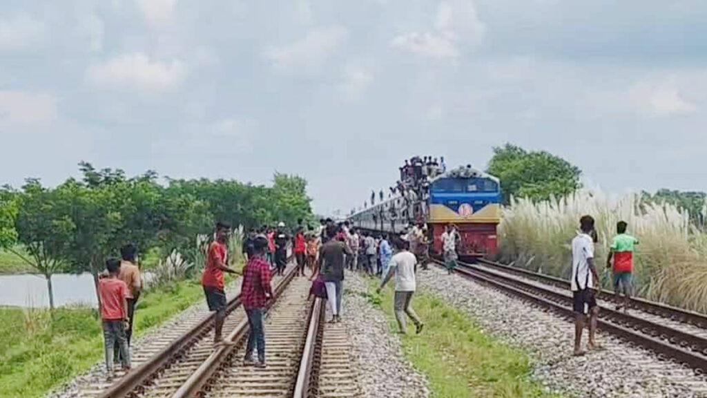 ব্রাহ্মণবাড়িয়ার আখাউড়ায় লেভেল ক্রসিংয়ে গেট নির্মাণ ও লেভেল ক্রসিংয়ে গেটম্যান নিয়োগের দাবিতে রেলপথ অবরোধ করা হয়েছে।