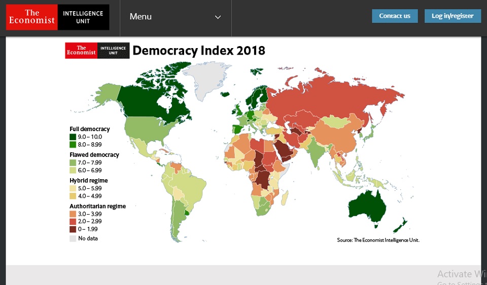 ইকোনমিস্ট ইন্টেলিজেন্স ইউনিট বলছে, তাদের সমীক্ষায় ২০১৮ সালে বৈশ্বিক স্কোর হয়েছে আগের বছরের মতই ৫.৪৮। এর অর্থ, মোটা দাগে বিশ্বে গণতন্ত্র পরিস্থিতির তেমন কোনো পরিবর্তন আসেনি।