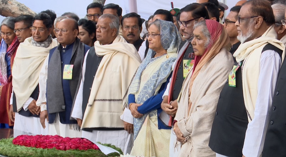 বঙ্গবন্ধুর স্বদেশ প্রত্যাবর্তন দিবসে ধানমন্ডির ৩২-এ তাঁর প্রতিকৃতিতে ফুল দিয়ে শ্রদ্ধা জানিয়েছেন প্রধানমন্ত্রী শেখ হাসিনা।সকাল সাতটায় প্রথমে প্রধানমন্ত্রী হিসেবে এবং পরে আওয়ামী লীগ সভাপতি হিসেবে দলের সিনিয়র নেতাদের সাথে নিয়ে শ্রদ্ধা জানান শেখ হাসিনা।