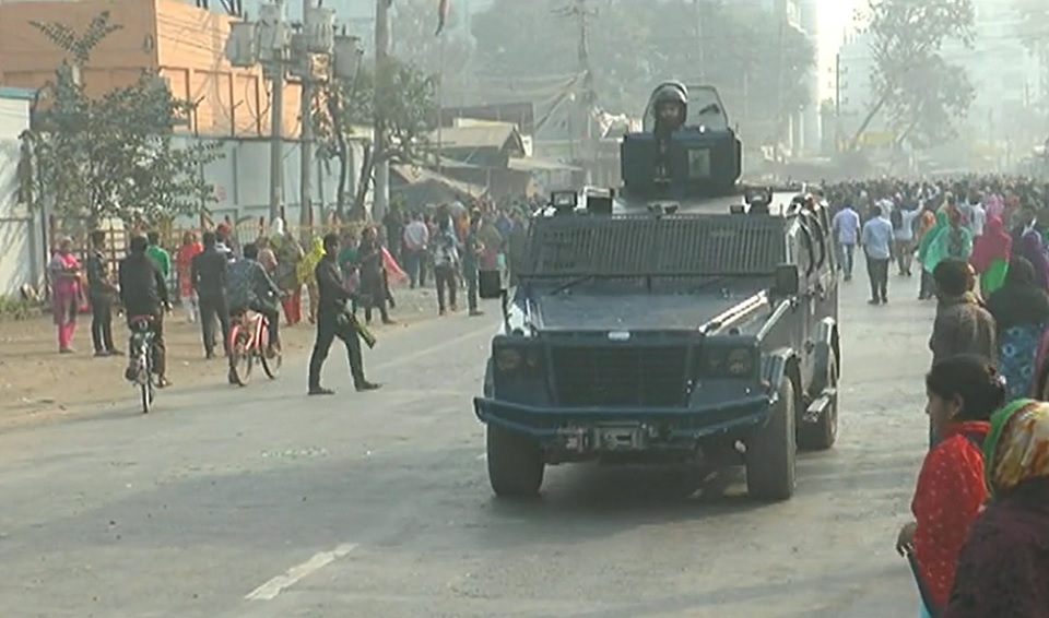 এছাড়া গাজীপুরের গাজীপুরা, বড়বাড়ি ও কালিয়াকৈরে সকালে থেকে থেমে থেমে বিভিন্ন কারখানায় সরকারে ঘোষিত মজুরির দাবিতে শ্রমিকরা মহাসড়ক অবরোধ করে বিক্ষোভ করে। এসময় পুলিশ টিয়ারশেল নিক্ষেপ করে শ্রমিকদের ছত্রভঙ্গ করে দেয়।