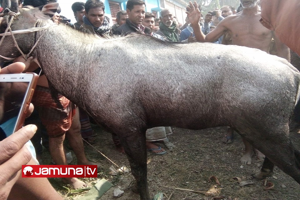 স্থানীয়রা জানান, সকালে প্রাণীটি জোত বাজার এলাকায় উদ্দেশ্যহীন ভাবে ছোটাছুটি করছিলো। দেখতে পেয়ে গ্রামের শতাধিক বাসিন্দা ধাওয়া দিয়ে সেটিকে আটক করে। এসময় প্রাণীটিকে গ্রামের মধে্যই প্রানীটি বেঁধে রেখে মান্দা থানা পুলিশ ও প্রানী সম্পদ কর্মকর্তাকে খবর দেয়া হয়।