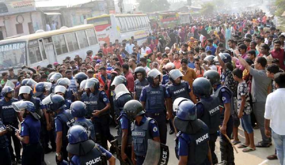 নারায়ণগঞ্জে শ্রমিকদের বিক্ষোভ, যানবাহন ভাঙচুর