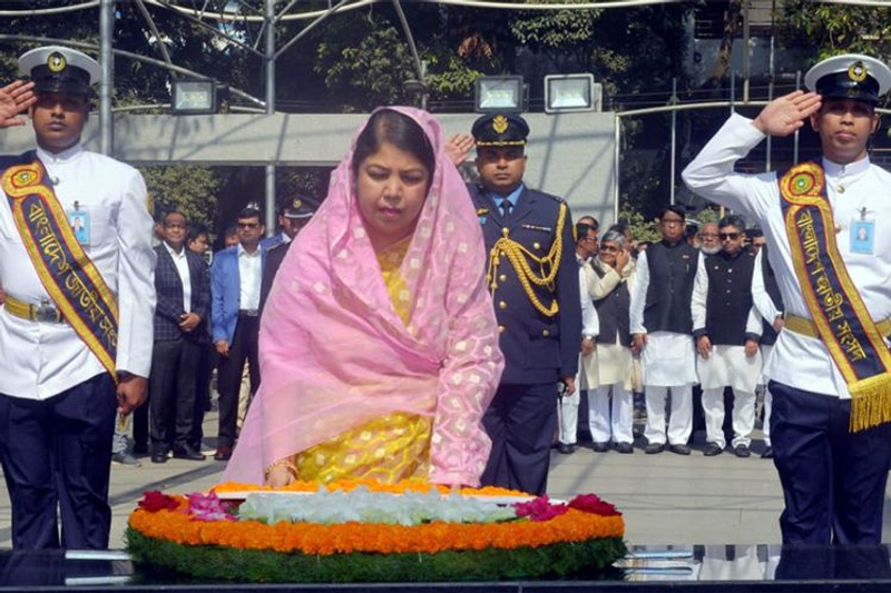 বেলা ১২ টার দিকে স্মৃতিসৌধে শহীদদের প্রতি প্রথমে ফুল দিয়ে শ্রদ্ধা জানান স্পিকার শিরীন শারমীন চৌধুরী। এরপর ডেপুটি স্পিকার ফজলে রাব্বি মিয়া ও চিফ হুইপ নূর ই আলম চৌধুরী শ্রদ্ধা নিবেদন করেন।