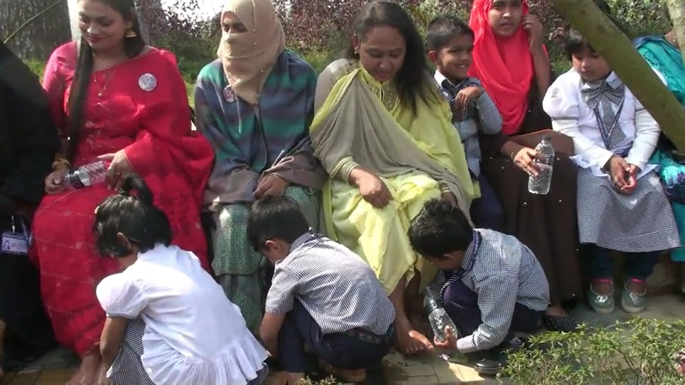 আজ সকালে স্থানীয় একটি স্কুলের উদ্যোগে এসপি পার্ককে শতাধিক মায়ের পা ধুয়ে দেন তাদের সন্তানেরা। পরে মায়ের জন্য ভালবাসা স্লোগান দিয়ে শিশুরা তাদের গলায় মেডেল পরিয়ে দেন।