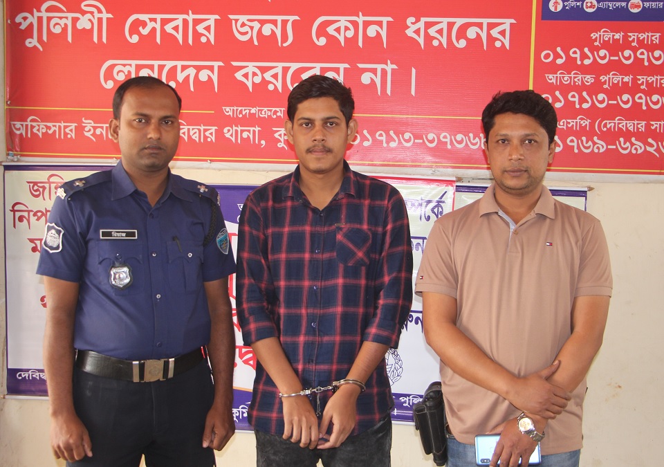 পুলিশ জানায়, সোমবার রাতে গোপন সংবাদের ভিত্তিতে মামলার তদন্তকারী কর্মকর্তা এসআই সোহরাব হোসেনের নেতৃত্বে পুলিশ অভিযান চালিয়ে নিমসার এলাকায় থেকে তাকে গ্রেফতার করে। আজ মঙ্গলবার দুপুরে তাকে কুমিল্লার আদালতে প্রেরণ করে ৫ দিনের রিমাণ্ড আবেদন করেছে পুলিশ।