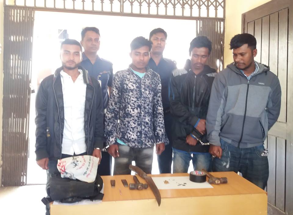 আটককৃতরা হলো, পৌর এলাকার তিমিরপুর গ্রামের আশরাফ উল্লার ছেলে উপজেলা ছাত্রলীগের সাবেক সাধারণ সম্পাদক সাইদুর রহমান (২৭), আবু মিয়ার ছেলে আলী হোসেন (২৫), আব্দুল মালিকের ছেলে এম.কে রাহুল (২৮) ও রাজনগর গ্রামের আশাবদ উল্লার ছেলে সুরুজ আলী (২৫)।
