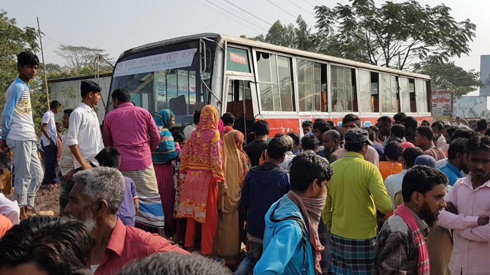 পুলিশ জানায়, বিআরটিসি’র বাসটি মাওয়া থেকে ঢাকার উদ্দেশে যাচ্ছিল। পথে চন্দেরবাড়ি এলাকায় নিয়ন্ত্রণ হারিয়ে ঢুকে পড়ে রাস্তার পাশে নির্মাণাধীন একটি বাড়িতে। সেখানে কাজ করতে থাকা তিন শ্রমিকের মধ্যে রহমান শেখ নামে একজন ঘটনাস্থলেই নিহত হন। অন্য দু’জনকে গুরুতর অবস্থায় শ্রীনগর উপজেলা স্বাস্থ্য কমপ্লেক্সে নেয়া হলে পরশ আলী নামে আরেক শ্রমিকের মৃত্যু হয়। উন্নত চিকিৎসার জন্য আহত আরেকজনকে আনা হয়েছে ঢাকায়।