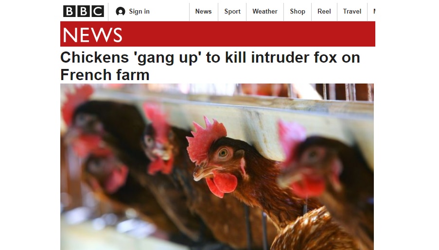 ফ্রান্সের এক মুরগির খামারে ঘটেছে বেশ অদ্ভুত এক ঘটনা। মুরগিদের হামলায় নিহত হয়েছে এক শিয়াল। আজ বার্তা সংস্থা এএফপি এ খবর জানিয়ছে।