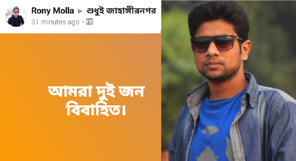 এদিকে রনি মোল্লার মোবাইলে যোগাযোগ করা হলে বন্ধ পাওয়া যায়। কিন্তু তিনি ফেসবুকের এক স্ট্যাটাসে জানিয়েছেন যে, তারা বিবাহিত।