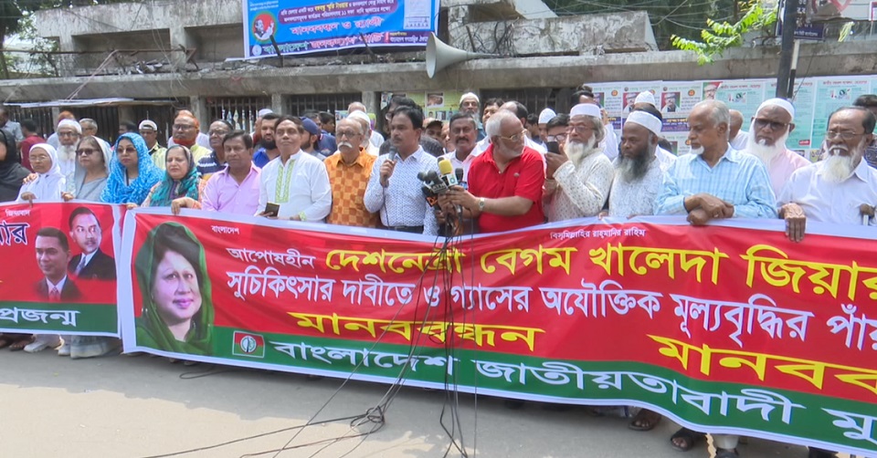 দুপুরে প্রেসক্লাবের সামনে জাতীয়তাবাদী মুক্তিযোদ্ধা দল আয়োজিত মানববন্ধনে বিএনপির এই নেতা বলেন-অন্যায়ভাবে বিএনপি চেয়ারপারসনকে জেলে রাখা হয়েছে। অসুস্থ খালেদা জিয়াকে দ্রুত মুক্তি দেয়ার আহ্বান জানান তিনি। সারাদেশে নেতাকর্মীদের উপর হামলা মামলা অব্যাহত আছে অভিযোগ করে গুম খুন বন্ধের আহ্বান জানান মোয়াজ্জেম হোসেন আলাল।