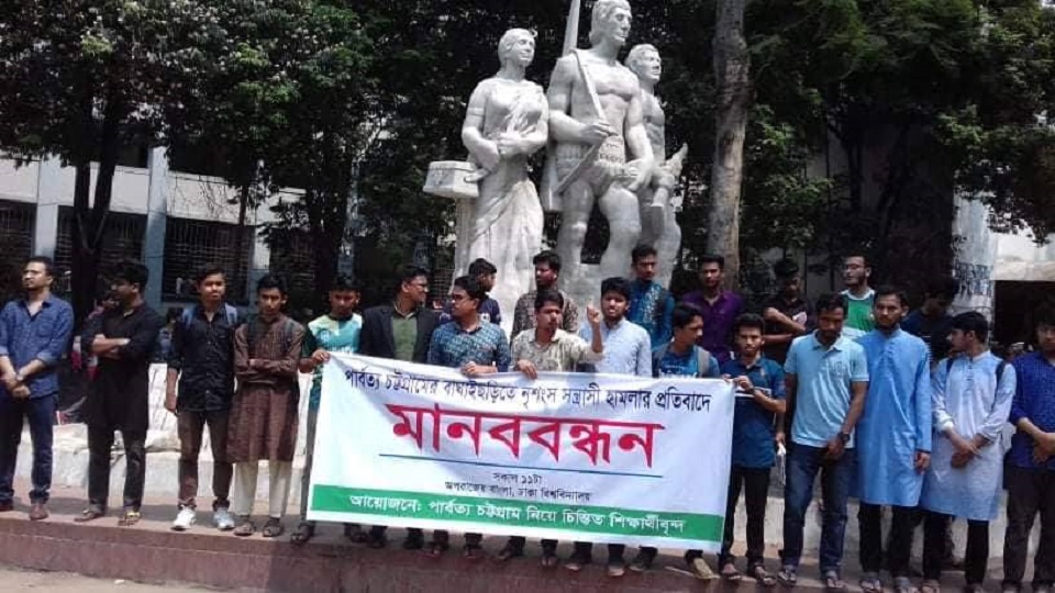 বাঘাইছড়িতে হামলার ঘটনায় ঢাবিতে মানববন্ধন