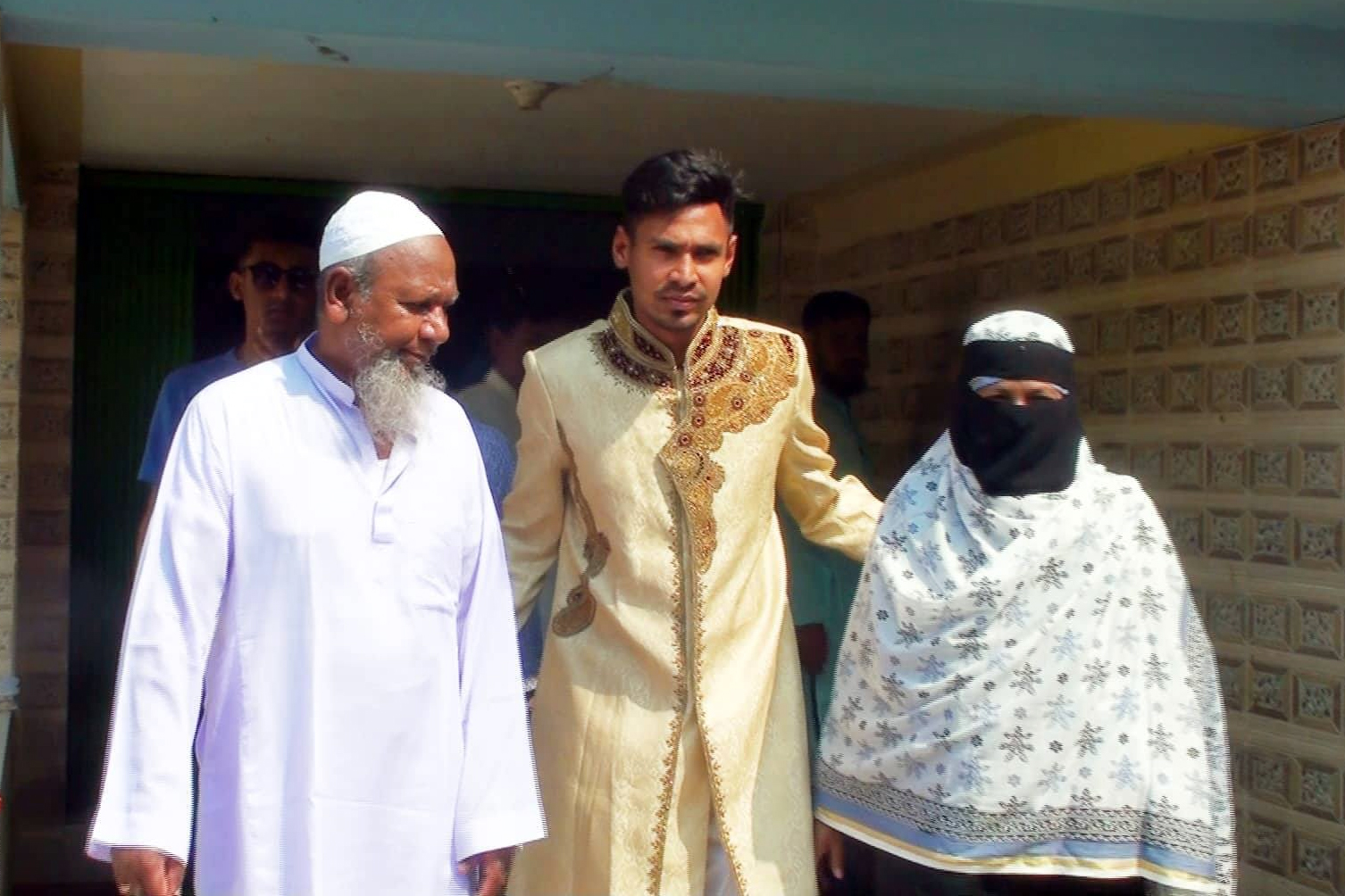 বিয়ের পিড়িতে বসলেন কাটার মাস্টার খ্যাত জাতীয় দলের তারকা ক্রিকেটার মোস্তাফিজুর রহমান। শুক্রবার দুপুর সাড়ে ৩টার দিকে নিজ জেলা সাতক্ষীরার দেবহাটা উপজেলার হাদিপুর গ্রামে আপন মেঝ মামা সাবেক ইউপি সদস্য মো. রওনাকুল ইসলাম বাবুর বাড়িতে খুবই স্বপ্ল পরিসরে বিয়ের আনুষ্ঠানিকতা শেষ হয় তার। বিয়ের দেনমোহর ধার্য করা হয়েছে পাঁচ লক্ষ এক টাকা।