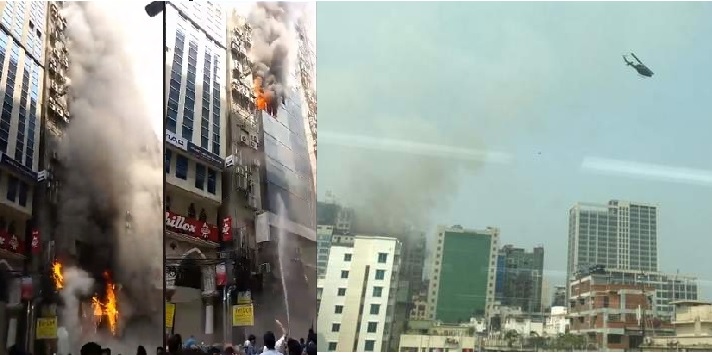 রাজধানীর বনানীতে ২২ তলা একটি ভবনে ভয়াবহ আগুন লেগেছে। আগুন নিয়ন্ত্রণে সর্বোচ্চ চেষ্টা করে যাচ্ছে দমকল বাহিনী। ২ ঘণ্টারও বেশি সময় ধরে আগুন না কমায় বিমান বাহিনীর হেলিকপ্টার ঘটনাস্থলে পৌঁছেছে। ভবনসহ আশপাশের এলাকায় চক্কর দিতে দেখা গেছে একটি হেলিকপ্টারকে।