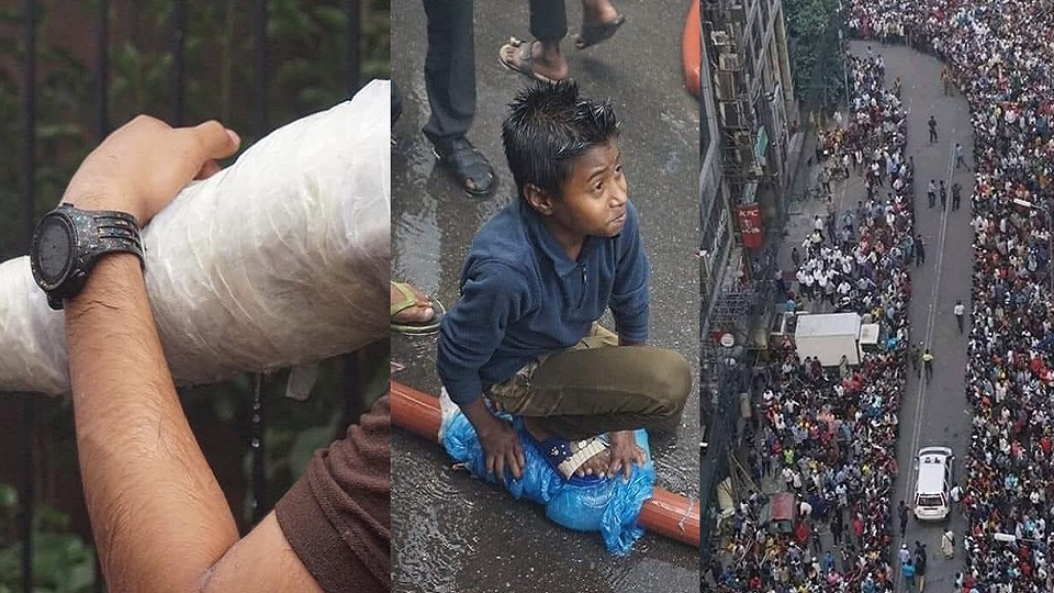 সাধ্যের সবটুকু শক্তি দিয়ে পাইপের লিকেজ চেপে ধরার আপ্রাণ চেষ্টা ছিল ছোট্ট এই শিশুটিরও