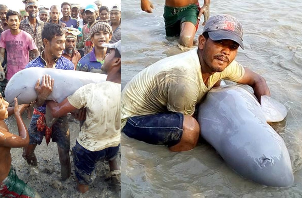 স্থানীয় বাসিন্দা মুনসুর আলি জানান, সকালে ভাটার সময় ডলফিনের বাচ্চাটিকে নদীর চরে আটকে থাকতে দেখেন স্থানীয়রা। এ সময় তিনি সেটি উদ্ধার করে আশাশুনি থানায় খবর দেন। পরে পুলিশ ও উপজেলা নির্বাহী কর্মকর্তা এসে জোয়ারের সময় ডলফিনের বাচ্চাটি নদীতে অবমুক্ত করেন। কিন্তু পরের ভাটার সময় ডলফিনটিকে আবরো নদীর চরে আটকে থাকতে দেখা গেছে।