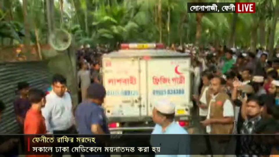 ফেনী সোনাগাজীতে নিজ গ্রামে পৌছেছে মাদ্রাসা ছাত্রী নুসরাত জাহান রাফির মরদেহ।