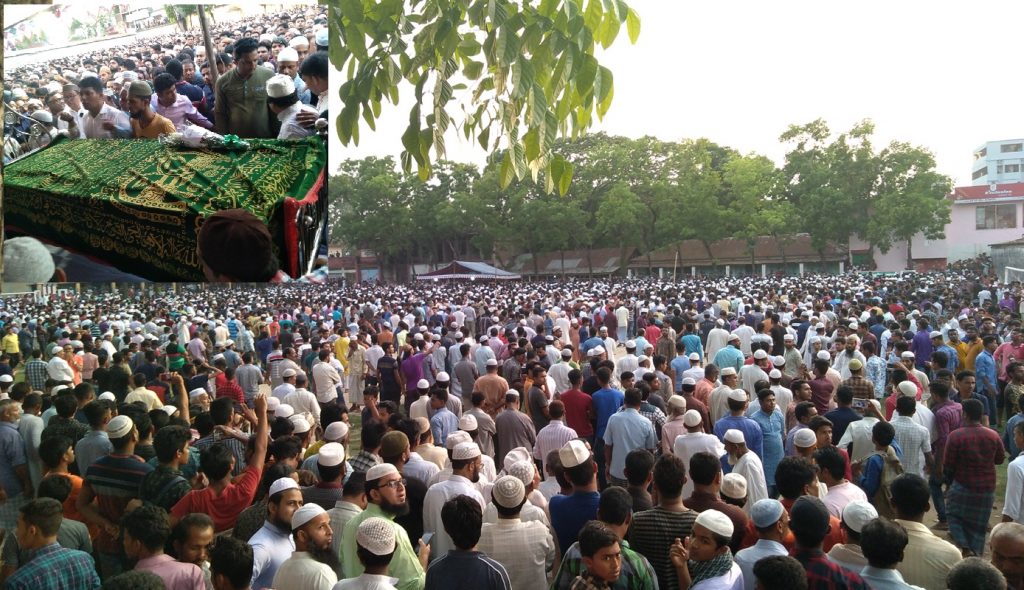 কালো পিচঢালা পথ বেয়ে এগিয়ে চলেছে লাশবাহী একটি গাড়ি। রাস্তার দু’পাশে তখন নিঃশব্দ পায়ে হেঁটে চলেছেন হাজারো মানুষ। গন্তব্য তাদের একটি স্কুলের মাঠ। ওখানে জানাজা হবে নুসরাতের। শেষ বিদায় জানানো হবে এই কিশোরীকে। আগন্তুকদের বেশিরভাগই জীবনে একবারের জন্যও দেখেননি নুসরতাকে। চিনতেন না তাকে। কিন্তু তাদের চোখও আজ পানিতে ভেসে যাচ্ছে। নীরবে কাঁদছেন সবাই।