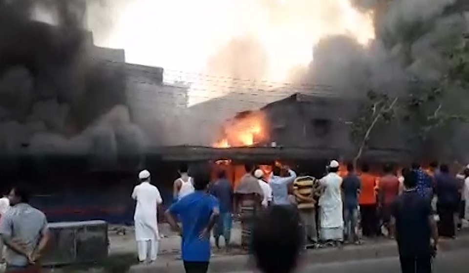 ভোর সাড়ে ৫টার দিকে কাচাঁবাজারে আগুনের সূত্রপাত।