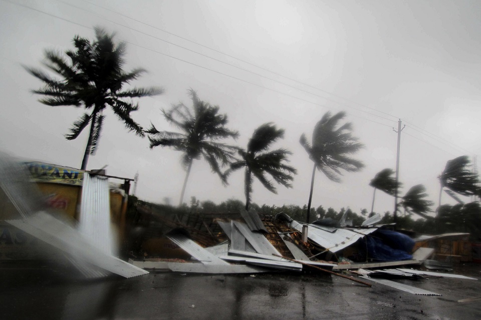 Street shops are seen collapsed due to gusty winds preceding the landfall of cyclone Fani on the outskirts of Puri, in the Indian state of Odisha, Friday, May 3, 2019. Indian authorities have evacuated hundreds of thousands of people along the country's eastern coast ahead of a cyclone moving through the Bay of Bengal. Meteorologists say Cyclone Fani was expected to make landfall on Friday with gale-force winds of up to 200 kilometers (124 miles) per hour likely starting Thursday night. It warned of "extremely heavy falls" over parts of the state of Odisha and its southern neighbor Andhra Pradesh. (AP Photo)