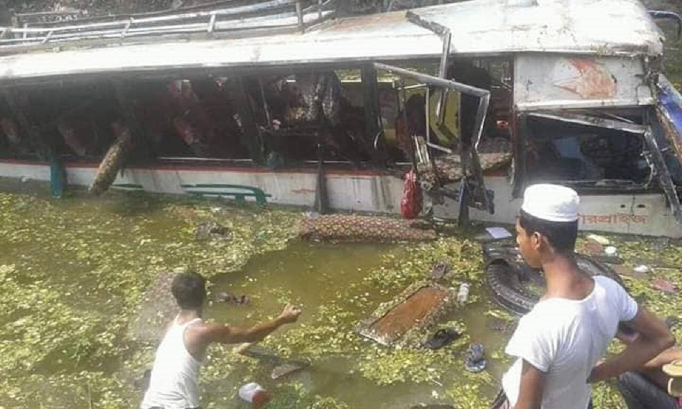 নোয়াখালীর চাটখিল উপজেলার রামগঞ্জ-চাটখিল সড়কে জননী পরিবহনের একটি যাত্রীবাহী বাস নিয়ন্ত্রণ হারিয়ে খালে পড়ে যায়। এতে ঘটনাস্থলে ৩ যাত্রী নিহত ও অন্তত ২০ যাত্রী আহত হয়েছেন। আহতদের মধ্যে অনেকের অবস্থা আশঙ্কাজনক। মৃতের সংখ্যা বাড়তে পারে বলে জানা গেছে।
