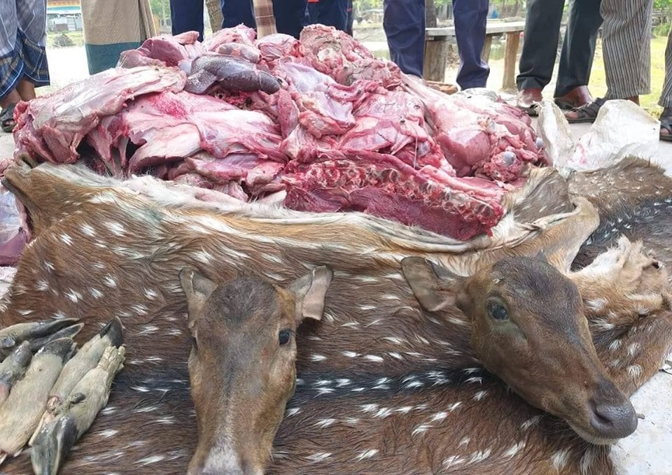 বন বিভাগের পদ্মা এলাকার বিট কর্মকর্তা বদিউজ্জামান সোহাগ বলেন, গোপন সংবাদের ভিত্তিতে শনিবার ভোররাতে পুলিশের সহযোগিতায় বনফুল গুচ্ছগ্রাম এলাকায় অভিযান চালায় বন বিভাগ। এসময় গুচ্ছগ্রামের একটি খালের ভেতরে থাকা নাম বিহীন একটি ইঞ্জিনচালিত ট্রলারে তল্লাশী চালিয়ে দুটি হরিণের চামড়া ও মাথা, ৫ মণ হরিণের মাংস, দুই বস্তা হরিণ শিকারের ফাঁদ সহ একটি ট্রলার জব্দ করা হয়।