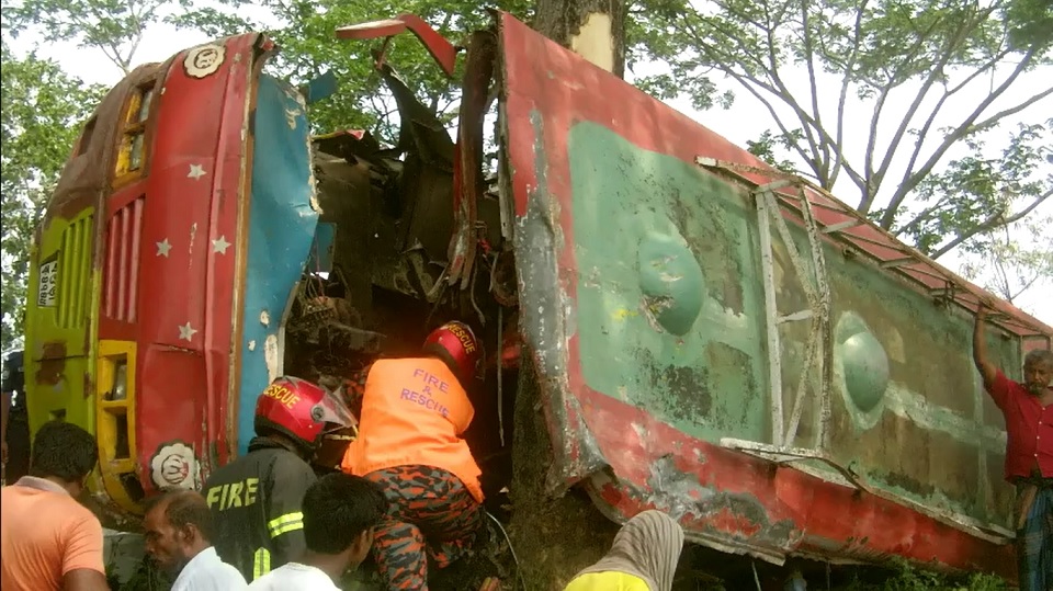 পুলিশ জানায়, খুলনা থেকে আসা একটি যাত্রীবাহী বাস গাছের সঙ্গে ধাক্কা লেগে নিয়ন্ত্রণ হারায়। পড়ে যায় খাদে। ঘটনাস্থলেই বাসের চালকসহ ৫ জনের মৃত্যু হয়।