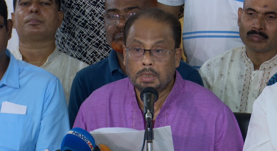 শনিবার দুপুরে জাতীয় পার্টি চেয়ারম্যানের বনানী অফিসে আয়োজিত এক সংবাদ সম্মেলনে তিনি একথা বলেন। উক্ত সংবাদ সম্মেলনে আরও উপস্থিত ছিলেন জাতীয় পার্টির মহাসচিব মসিউর রহমান রাঙ্গা, প্রেসিডিয়াম সদস্য শামীম হায়দার পাটোয়ারী, আলমগীর সিকদার লোটন, নাজমা আকতার প্রমুখ।