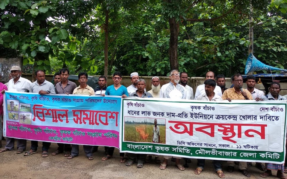 ন্যায্যমূল্যের ভিত্তিতে কৃষকদের কাছ থেকে সরাসরি ধান ক্রয় ও মিল মালিকদের কাছ থেকে চাল ক্রয় বন্ধের দাবীতে মৌলভীবাজারে বিক্ষোভ মিছিল ও অবস্থান কর্মসূচি করেছে বাংলাদেশ কৃষক সমিতি মৌলভীবাজার জেলা কমিটি।