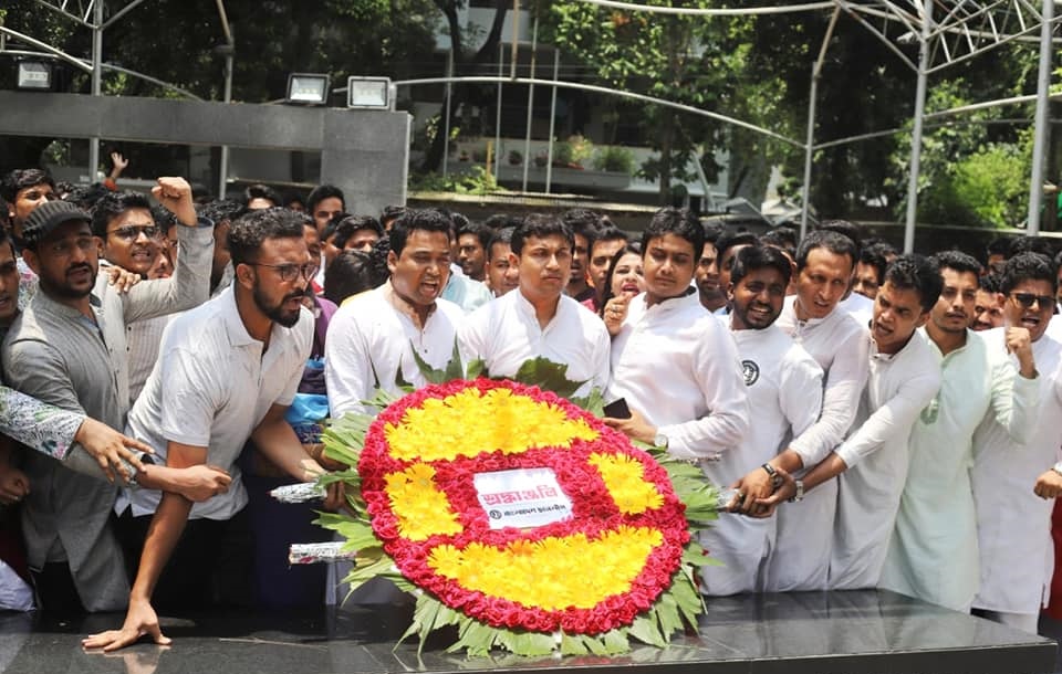 বঙ্গবন্ধুর প্রতিকৃতিতে ছাত্রলীগের নতুন কমিটির শ্রদ্ধা