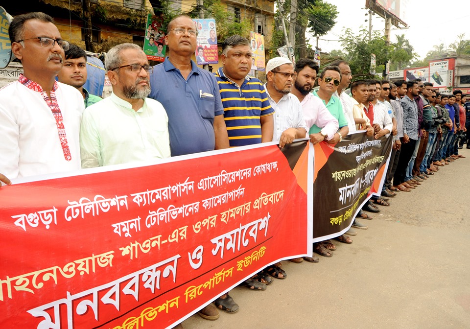 সোমবার শহরের সাতমাথা চত্ত্বরে আয়োজিত এই কর্মসূচিতে সভাপতিত্ব করেন টেলিভিশন রিপোর্টার্স ইউনিটির সভাপতি আবদুর রহিম বগরা। ইউনিটির সাংগঠনিক সম্পাদক মেহেরুল সুজনের সঞ্চালনায় বক্তব্য দেন বাংলাদেশ ফেডারেল সাংবাদিক ইউনিয়নের যুগ্ম মহাসচিব জিএম সজল, বগুড়া প্রেসক্লাবের সাধারণ সম্পাদক মাহমুদুল আলম নয়ন, বগুড়া সাংবাদিক ইউনিয়নের সভাপতি আমজাদ হোসেন মিন্টু, সাধারণ সম্পাদক জেএম রউফ, টেলিভিশন রিপোর্টার্স ইউনিটির সাধারণ সম্পাদক চপল সাহা, নির্বাহী সদস্য ফরহাদ শাহী, বগুড়া ফটো জার্নালিস্ট অ্যাসোসিয়েশনের সভাপতি মমিনুর রশিদ সাইন ও ক্যামেরাপার্সন অ্যাসোসিয়েশনের সভাপতি শফিকুল ইসলাম শফিক।