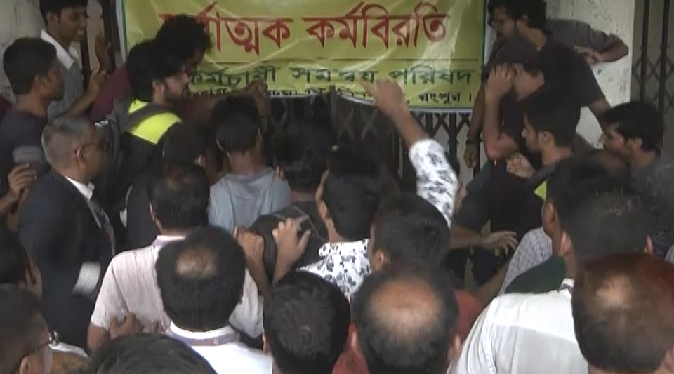 বকেয়া বেতন-ভাতা প্রদানসহ তিন দফা দাবিতে অনির্দিষ্টকালের ধর্মঘট পালন করছে কর্মচারিরা। মঙ্গলবারে বিক্ষোভের সময় তাদের ওপর হামলার ঘটনা ঘটে। এতে আহত হন অন্তত আটজন কর্মচারি। এ ঘটনার পর উপাচার্যের বাসভবনে কর্মচারী সমন্বয় পরিষদের বৈঠক কোন সিদ্ধান্ত ছাড়াই শেষ হয়। এরপরই প্রক্টরকে সরিয়ে দেয়ার পাশাপাশি ক্যাম্পাসে সভা সমাবেশ নিষিদ্ধ করতে উপাচার্য নাজমুল আহসান কলিম উল্লাহ নির্দেশ দেন বলে অভিযোগ করেছেন আন্দোলনকারীরা।
