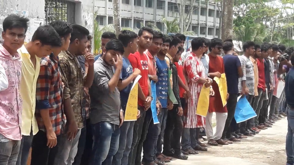 স্ত্রীর সামনে প্রকাশ্যে স্বামীকে কুপিয়ে হত্যার প্রতিবাদে বরগুনায় মানববন্ধন করেছে শিক্ষার্থীরা।