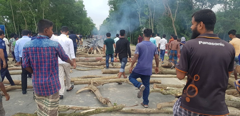 এ ঘটনার প্রতিবাদে স্থানীয় বিক্ষুব্ধ জনতা প্রায় দুই ঘণ্টা ঢাকা-খুলনা মহাসড়ক অবরোধ করে রাখে। পরে প্রশাসনের অনুরোধে অবরোধ তুলে নেয় জনতা।