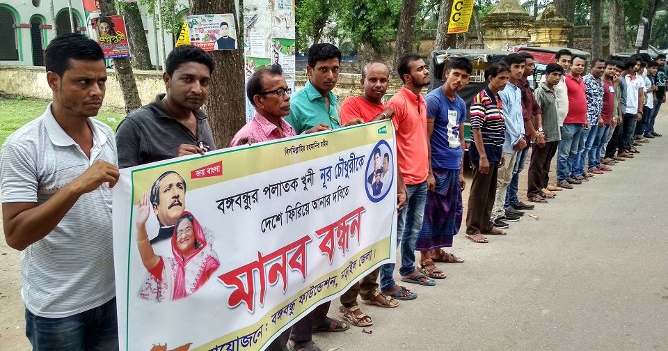 বঙ্গবন্ধুর খুনী নূর চৌধুরীকে দেশে ফিরিয়ে আনার দাবিতে মানববন্ধন