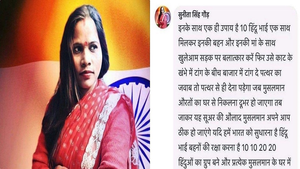এবার হিন্দু যুবকদের প্রতি মুসলিম মেয়েদের প্রকাশ্যে রাস্তায় ফেলে গণধর্ষণ করার আহ্বান জানালেন বিজেপির মহিলা মোর্চার নেত্রী সুনিতা সিং গওর।