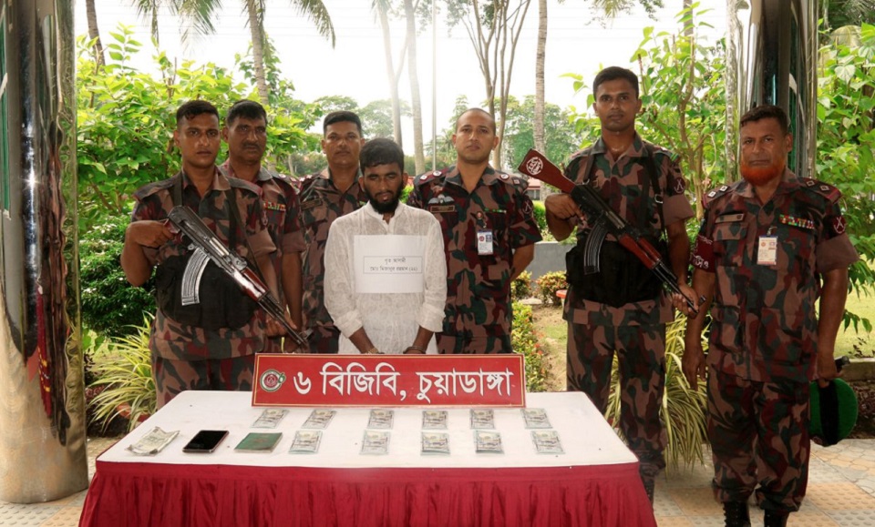 দুপুরে চুয়াডাঙ্গা ৬ বিজিবি’র ভারপ্রাপ্ত অধিনায়ক নিস্তার আহমেদ এক প্রেসবিজ্ঞপ্তির মাধ্যমে জানান, জেলার দামুড়হুদা উপজেলার দর্শনা আইসিপি চেকপোস্ট দিয়ে কতিপয় ব্যক্তি প্রায়ই ভারতে গমন করছে এমন সংবাদের ভিত্তিতে চুয়াডাঙ্গা ব্যাটালিয়নের (৬ বিজিবি) আইসিপি চেকপোস্টে কর্তব্যরত টহল কমান্ডার হাবিলদার আকরাম হোসেন এর নেতৃত্বে সকাল পৌনে নয়টায় ভারত হতে আসার পথে পাসপোর্ট যাত্রী মিজানুর রহমানকে আটক করা হয়। এসময় তার সাথে থাকা ট্রলি ব্যাগ তল্লাশি করে ১৮ হাজার ইউএস ডলার ৪ হাজার ভারতীয় রুপি এবং একটি ভিভো মোবাইল আটক করা হয়।