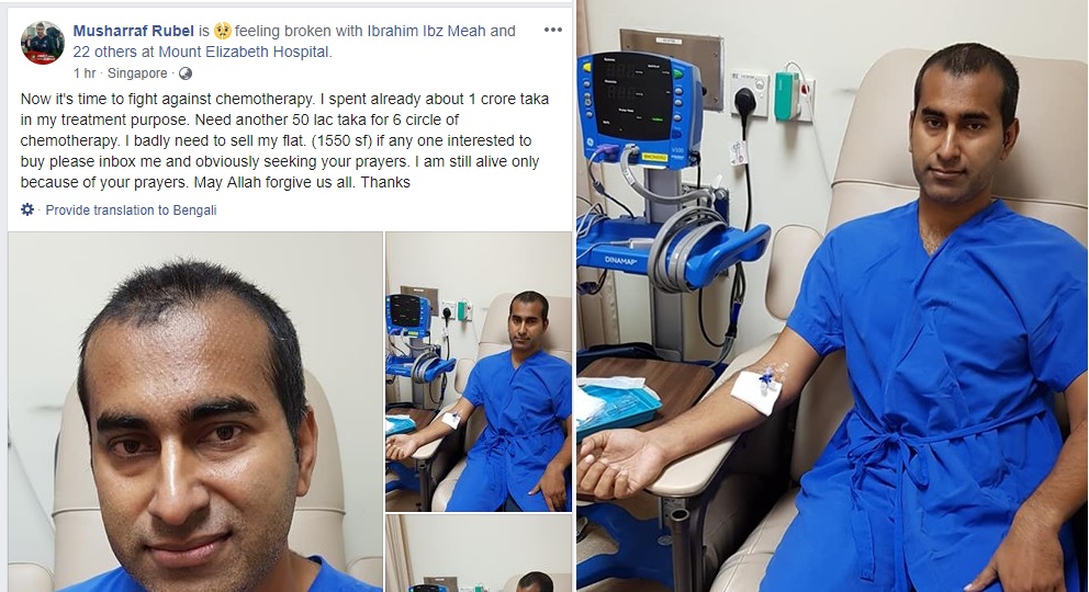 ফেসবুক পোস্টে তিনি লিখেছেন, ‘এখন যুদ্ধ করছি কেমোথেরাপির বিরুদ্ধে। চিকিৎসা বাবদ ইতোমধ্যে প্রায় ১ কোটি টাকা খরচ করে ফেলেছি। ছয় দফা কেমোথেরাপির জন্য আরও ৫০ লাখ টাকা প্রয়োজন। আমার ফ্ল্যাটটি বিক্রি করা জরুরি হয়ে পড়েছে। (১৫৫০ স্কয়ার ফুট)। কেউ কিনতে আগ্রহী হলে আমাকে ইনবক্সে জানান। আর অবশ্যই আপনাদের দোয়া চাচ্ছি। শুধু আপনাদের দোয়াই আমাকে এখনও বাঁচিয়ে রেখেছে। আল্লাহ যেন আমাদের সবাইকে ক্ষমা করে দেন।’