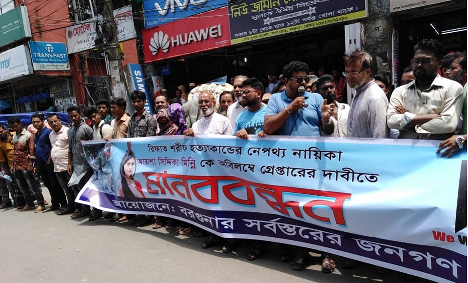 আজ রোববার সকাল ১১টায় বরগুনা প্রেসক্লাব চত্বরে মিন্নীর গ্রেফতারের দাবিতে মানববন্ধন কর্মসূচী পালন করেছে বরগুনার বিভিন্ন স্তরের লোকজন।