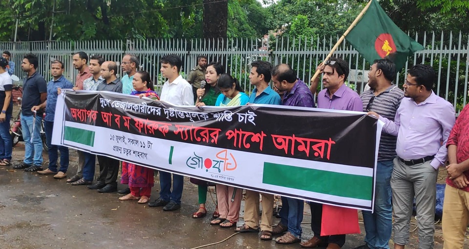 দুপুরে শাহবাগের জাতীয় যাদুঘরের সামনে প্রজন্ম ৭১ এর আয়োজনে ঢাকা বিশ্ববিদ্যালয়ের সাবেক শিক্ষার্থীরাও অংশ নেন। বক্তারা বলেন, অধ্যাপক আ ব ম ফারুক একজন সৎ ও গুণী শিক্ষক। তার গবেষণার বিরুদ্ধে করপোরেট সিন্ডিকেট ষড়যন্ত্র করছে। তারা বলেন, একজন ফারুকের পাশে সরকারও যদি না থাকে তাহলে দেশের গবেষণাখাত ও নিরাপদ খাদ্যের লক্ষ্য অর্জন ব্যাহত হবে। অধ্যাপক ফারুকের বিরুদ্ধে ষড়যন্ত্র বন্ধ না হলে কঠোর আন্দোলনের হুমকি দেন বক্তারা।
