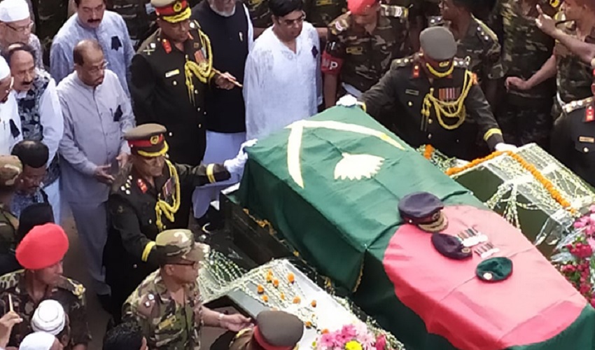 এর আগে কবরের পাশে তার মরদেহকে সেনাবাহিনীর পক্ষ থেকে গার্ড অনার প্রদান করা হয়।