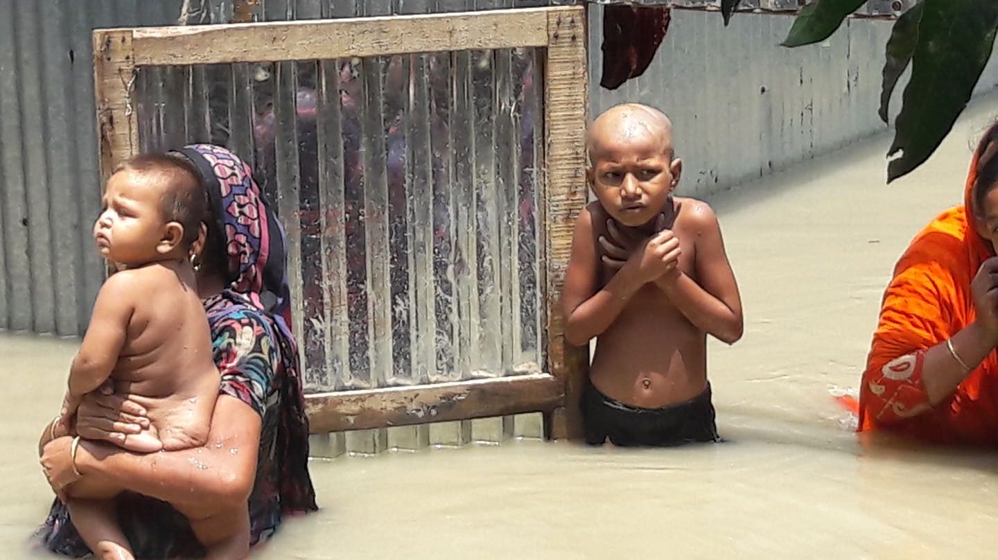শিশু সোহেল চোখে মুখে আতঙ্ক। বাড়ির যে উঠানে খেলা করার কথা সেখানে থৈ থৈ পানি। এমনটা দেখেনি সে কখনো। স্কুল বন্ধ সারাদিন বাড়িতেই। আতঙ্ক নিয়ে কাটে সারাদিন। আর রাত সেতো তার কাছে ভয়ঙ্কর একটা সময়। ঘরের ভিতরে পানি তার উপর সাপের ভয়।