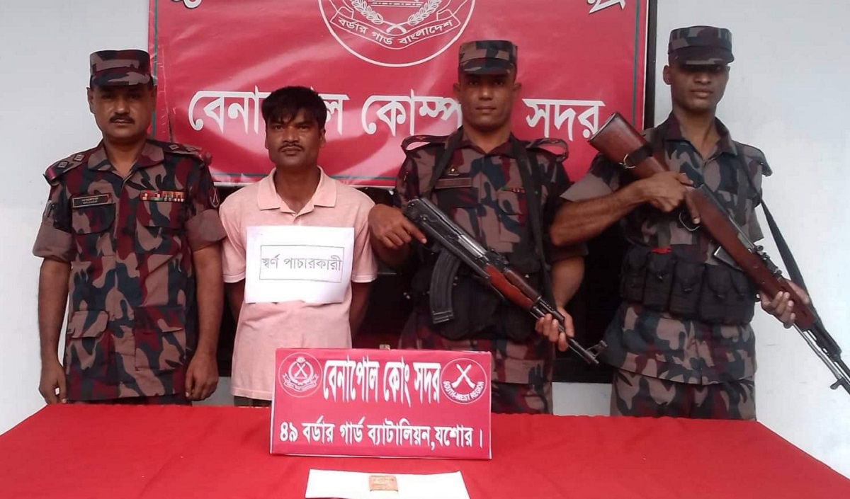 এমন সংবাদের ভিত্তিতে বেনাপোল বিজিবি ক্যাম্পের সদস্যরা সেখানে অভিযান চালিয়ে এক কেজি ওজনের একটি সোনারবার ও একটি ইজিবাইক সহ তাকে আটক করা হয় ।