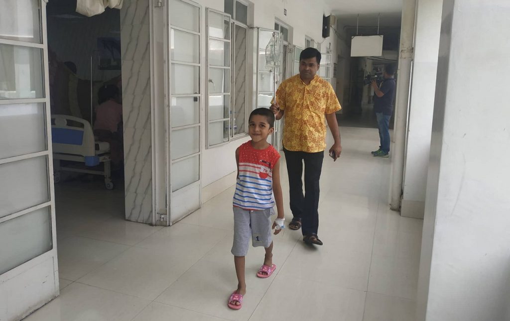 ডেঙ্গু থেকে আপাতত রেহাই মিলেছে। হাসপাতাল থেকে ছুটি পাওয়ার আনন্দ ধরা পড়েছে শিশুটির মুখে। নাম মো. ইয়াকুব আলী। বাসা মগবাজার। ডেঙ্গু আক্রান্ত হয়ে ছয়দিন ধরে রাজধানীর হলি ফ্যামিলি হাসপাতালে ছিলেন।
