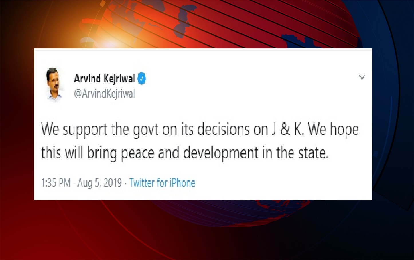 রাজনৈতিক ক্ষেত্রে কেজরিওয়াল বিজেপি সরকারের কট্টর সমালোচক হলেও এবার কাশ্মির ইস্যুতে তিনি সমর্থন দিলেন সেই বিজেপি সরকারের সিদ্ধান্তকেই।