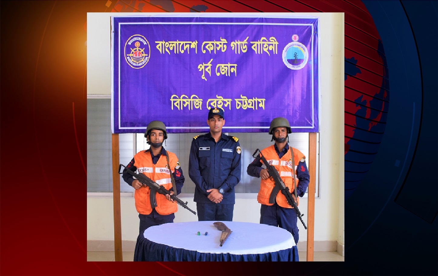 কোস্ট গার্ড জানায়, গোপন সংবাদের ভিত্তিতে শনিবার দিবাগত রাত ৪ টার দিকে আনোয়ারা থানার আওতাধীন গহিরা এলাকায় একটি ডাকাতদল ডাকাতি করার প্রস্তুতি নিচ্ছিল এমন সংবাদের ভিত্তিতে বিসিজি বেইস চট্টগ্রামের একটি টহলদল অভিযান পরিচালনা করে ০১ টি দেশীয় বন্দুক ও ০২ রাউন্ড কার্তুজ জব্দ করে।