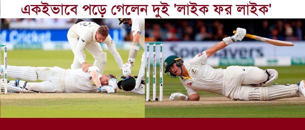 মাঠে বদলি খেলোয়াড় নামাটা নতুন কিছু নয়। কিন্তু সেই বদলি খেলোয়াড় হিসেবে সর্বোচ্চ ফিল্ডিং করতে পারেন। কিন্তু কনকাশনের (মাথায় আঘাত) বদলি হিসেবে নামা খেলোয়াড় ব্যাটও করতে পারবেন। এরই মাঝে স্মিথের বদলি হিসেবে নামা লেবুশেন স্মিথের জায়গাতেই অর্থাৎ চারে ব্যাট করতে নেমেছেন। স্মিথের মতোই দায়িত্বশীল ব্যাটিংও করছেন। তবে, আরেকটি মিলও দেখা গেছে স্মিথের সাথে তার ‘লাইক ফর লাইক’র। জফরা আর্চারের বলেই মাথায় আঘাত পেয়ে উইকেটের ওপর পড়ে গিয়েছেন লেবুশেন, স্মিথের মতোই!